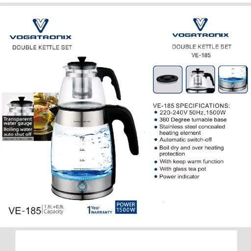 مشخصات فنی جزئی توان حرارتی: 1500 وات – جوشِ سریع و کممصرف گنجایش کتری / قوری: 1.8 L / 0.8 L – مناسب خانواده و مهمانی جنس المنت: استیل ضدزنگ 304 – ماندگاری طولانی سیستم ایمنی دوگانه: قطع خودکار هنگام جوش کامل یا اتمام آب پایه ۳۶۰ درجه: استفاده آسان برای کاربران راست-دست و چپ-دست طول سیم: ۶۰ cm – جمعوجور روی کانتر وزن دستگاه: 1.4 kg – سبک ولی پایدار