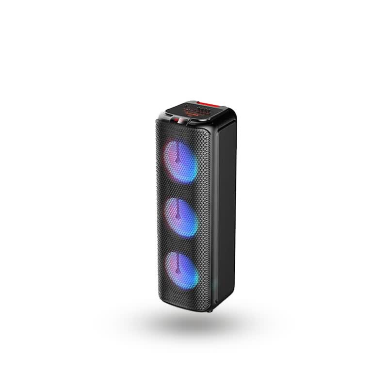 مشخصات فنی توان خروجی: ۴۰ وات RMS – صدای قدرتمند برای فضاهای متوسط سابووفرها: سه عدد ۸ اینچ تیوتر: یک اینچی برای فراکانسهای بالا باتری: ۴۵۰۰ میلیآمپر ساعت، شارژ کامل در ~۶ ساعت و پخش ۳–۵ ساعت درگاههای ارتباطی: بلوتوث ۵٫۰، USB، شیار کارت حافظه (TF)، ورودی AUX، FM رادیو و قابلیت اتصال TWS ابعاد/ارتفاع: ~ ۹۰ سانتیمتر ارتفاع کلی دستگاه وزن: حدود ۷٫۵ کیلو جنس بدنه: پلاستیک ABS مقاوم نسخه بلوتوث: ۵٫۰ نورپردازی LED: سه حالت رقص نور زیبا