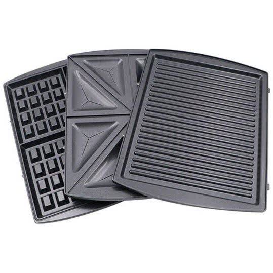 اقلام داخل جعبه و جنس قطعات بر اساس اطلاعات ترب، دیجیکالا و باسلام: دستگاه اصلی با بدنهای از استیل ضدزنگ و پلاستیک مقاوم سه صفحه جداشونده (اسنکزن، وافلزن و گریل) با روکش نچسب چدنی برای پخت آسان بدون چسبیدن غذا چراغ نشانگر جهت نمایش وضعیت آمادهبهکار و عملکرد دستگاه دفترچه راهنما و کارت گارانتی معتبر همراه بستهبندی استاندارد رنگبندی: عمدتاً رنگ مشکی براق که جلوهای شیک و مدرن دارد