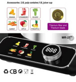 اقلام داخل جعبه و ویژگیهای ظاهری : دستگاه آبمیوهگیری مایر مدل MR-277 با بدنهای ترکیبی از استیل ضدزنگ و پلاستیک مقاوم پارچ شیشهای جمعآوری آبمیوه با کیفیت بالا و ظرفیت تقریبی ۱ لیتر مخزن تفالهی با ظرفیت حدود ۲ لیتر برای سهولت استفاده در آبگیریهای طولانیمدت تیغه و صافی استیل ضدزنگ برای عملکرد بهتر و دوام طولانیمدت صفحهنمایش LCD لمسی جهت کنترل ساده و دقیق تنظیمات سیستم ایمنی کامل شامل ضدچکه، سوئیچ ایمنی و پایه ضدلغزش برای تجربهای ایمن و بدون مشکل رنگبندی استیل با جزئیات مشکی که در آشپزخانه جلوهای مدرن به همراه دارد