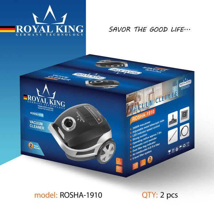سلام و درود خدمت شما همراهان گرانقدر، در ادامه به بررسی جامع جارو برقی Royal King مدل 1910 میپردازیم؛ دستگاهی که ترکیبی از قدرت، طراحی و کارایی است و برای استفاده روزمره خانگی بهینه شده است.